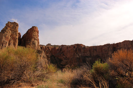 Access to the pueblo is difficult. Before modern times, residents (and raiders) could only reach the pueblo by climbing a hand-cut staircase carved into the sandstone.