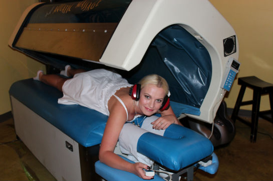 Me and Leah joined him, and soon after, the excellent salesman that we met, plugged a current producing machine to each of our backs. It was causing muscle contraction in the tense area, releasing the pressure in shoulders and as I found out, helping to loose fat from one’s ass. I was sold. We left the shop with a piece of high-tech equipment we are probably never going to use.