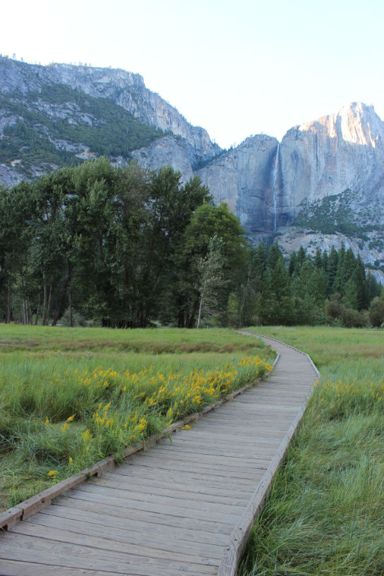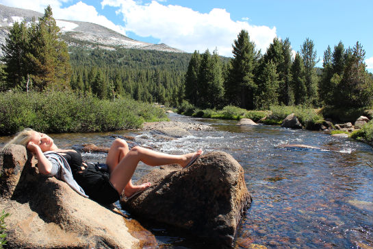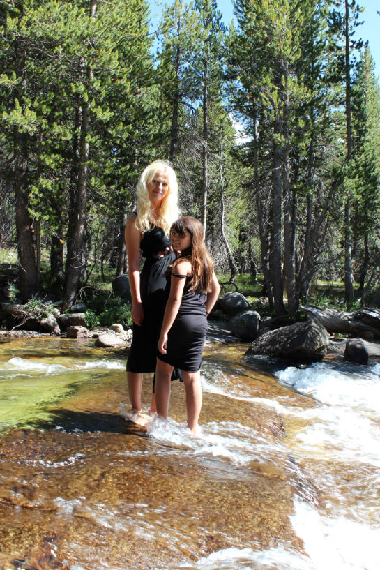 Me and Leah, both bare foot and picture ready, both wearing long, black summer dresses, that could easily be mistaken for an evening attire, with me in full make-up.. (I came to the conclusion that even with all those people here, must be over a thousand in yosemity village, if I was to run out of mascara, there would be no one to help me. Well, same goes for a hairbrush and lipstick, it feels slightly hippy here , but in a good, yuppie kinda way).